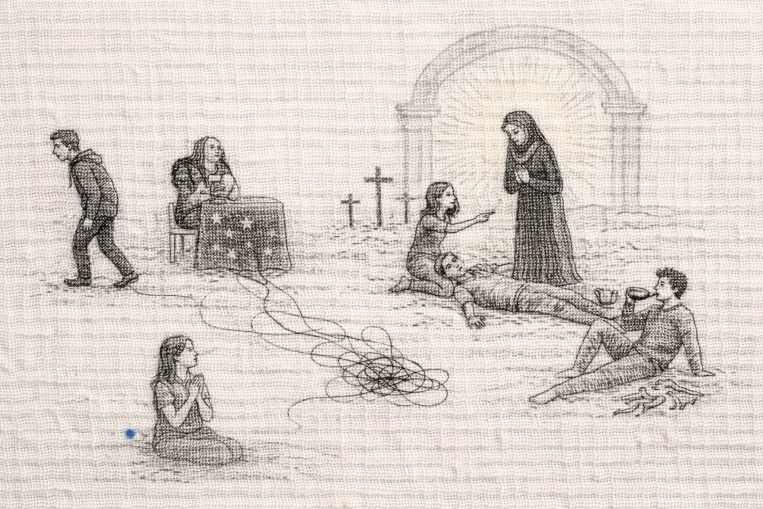 Hace mucho tiempo, en un templo de cualquier religión, había cuatro inquietos muchachos esperando a que su dios hablara. De repente llegó una señora vestida de negro, muy recogida en sus rezos, y les dijo: