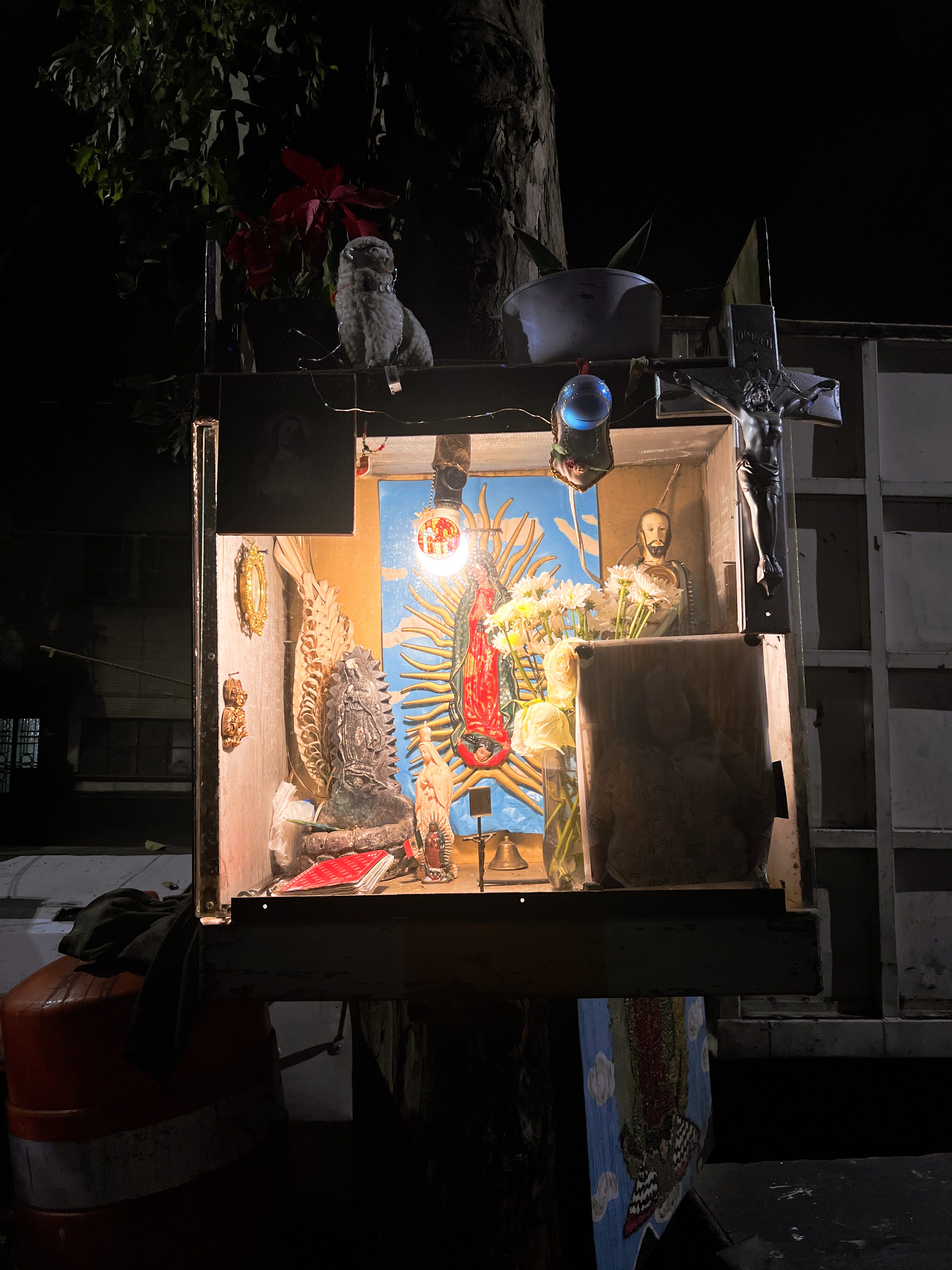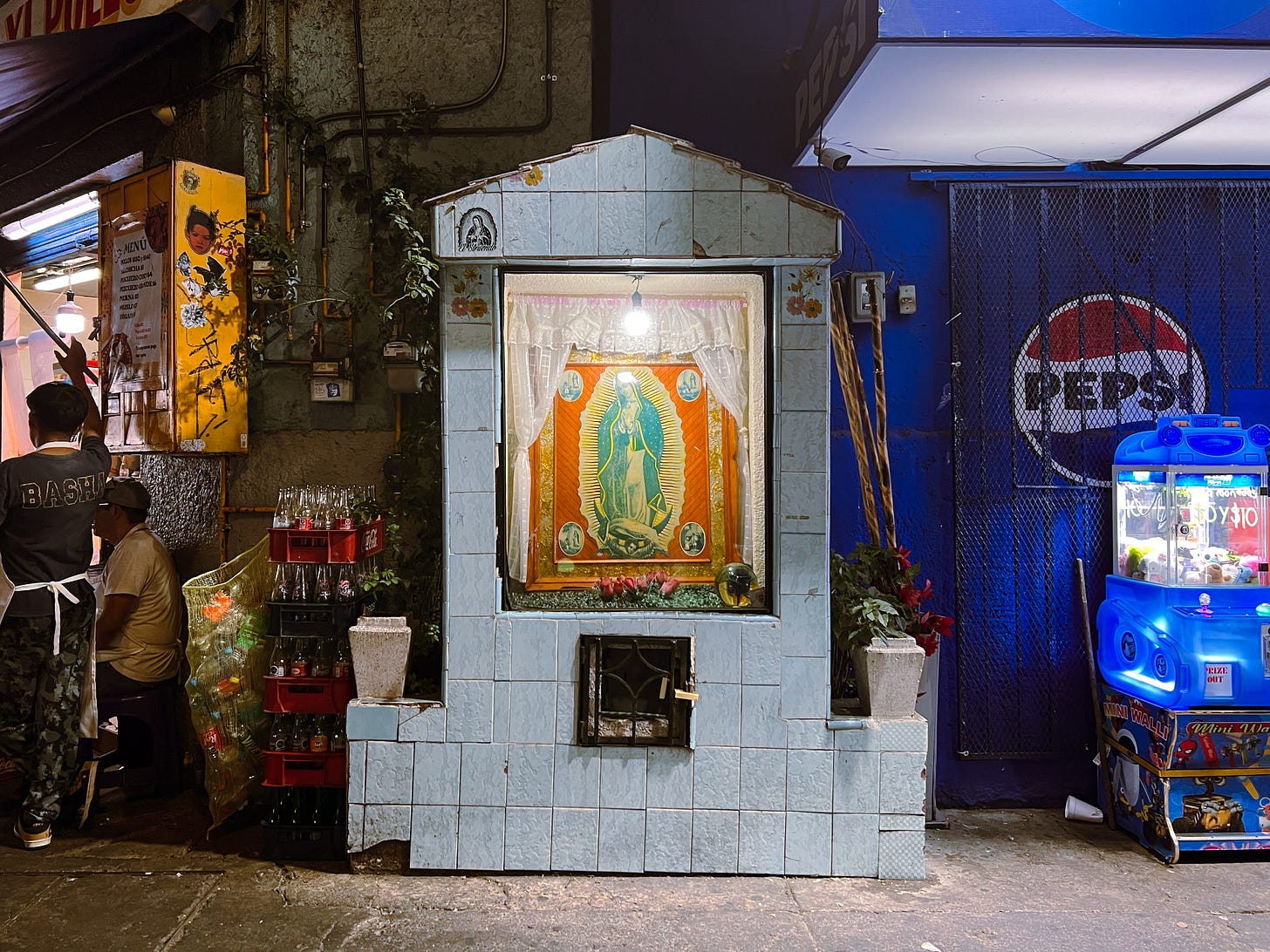 Hasta aquí todo bien. Yo, como todos, crecí con una noción bastante clara de que en mi país se adoraba a la Virgen de Guadalupe. Pero no había entendido, hasta hace muy poco, el arraigo que tiene en la vida cotidiana de estas tierras. Paseando por la Ciudad de México con un amigo extranjero, lo sorprendí deteniéndose abruptamente en cada calle, fotografiando cada esquina y los nichos de todas las casas. Y es que se maravilló al descubrir que la imagen guadalupana estaba en cada rincón: en pequeños altares, en mosaicos sobre la pared, en pinturas votivas. La Virgen no solo ocupa el espacio simbólico mexicano, habita, da forma y ordena el espacio físico.