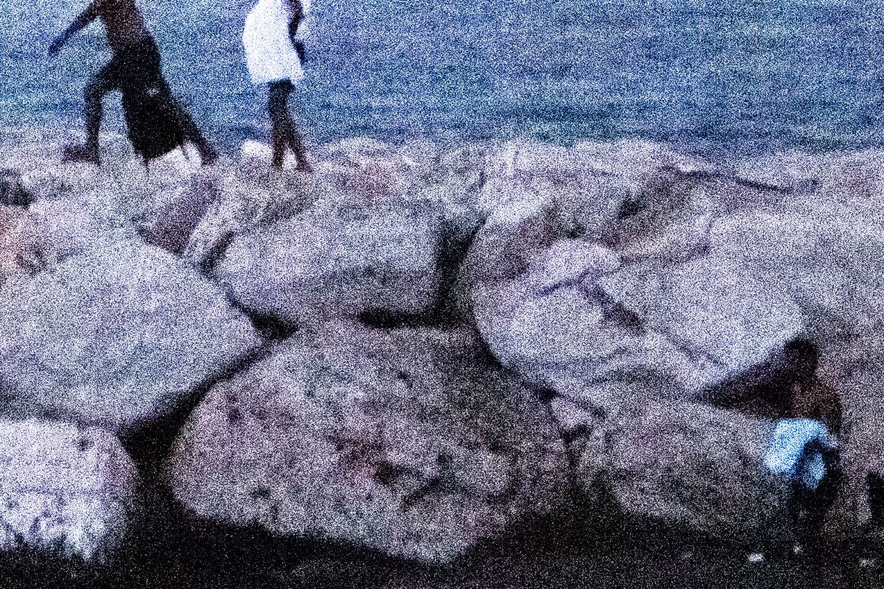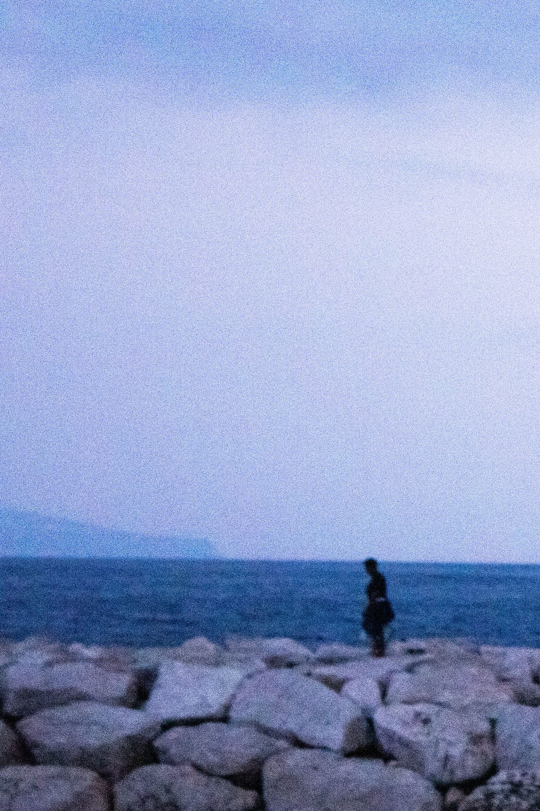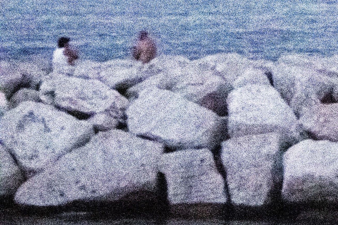 Siempre, en mis fotografías, me he inclinado por una imagen pobre, defectuosa, borrosa y tronada por ese grano digital que ensucia sacando nuevas formas que solo se podrían imprimir en esos píxeles llevados a su límite, convirtiendo las imágenes en una dimensión nueva e imaginaria en donde predominen y se manifiesten mis defectos; esta vez mi desesperanza en forma de horizontes que se desdibujan en la distancia, mi obsesión con el pixel volviendo la persona y su espacio en el mismo material quemado y sub expuesto combinando colores y formas que sumen una imagen fea, anti ultra-HD, pensando menos en el: ¿Qué piensan esas personas viendo al mar?, y más en: ¿Qué pienso yo viendo que ellos ven?