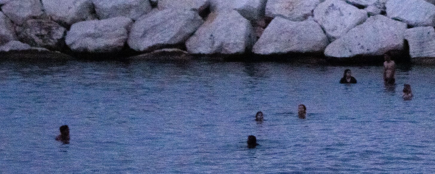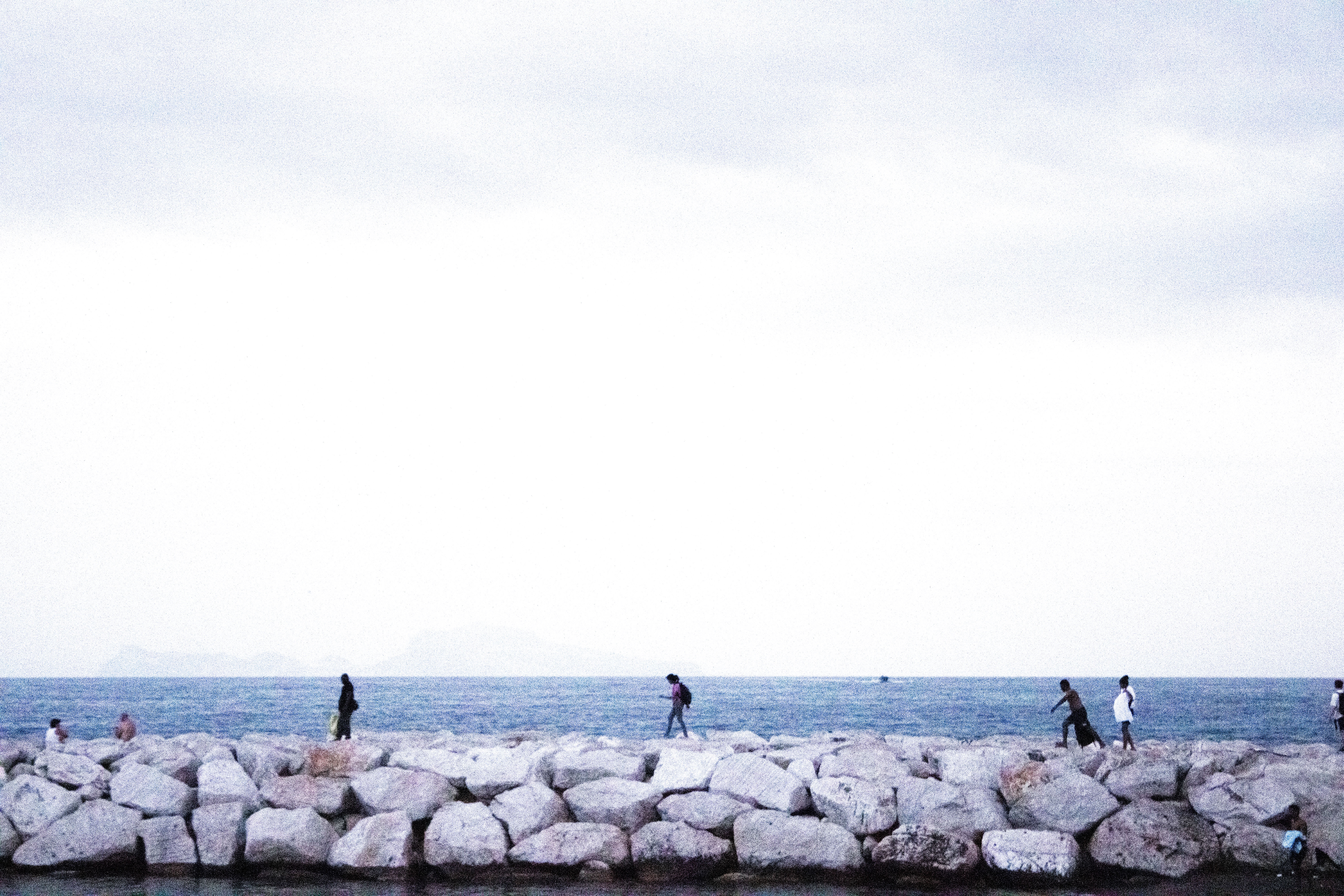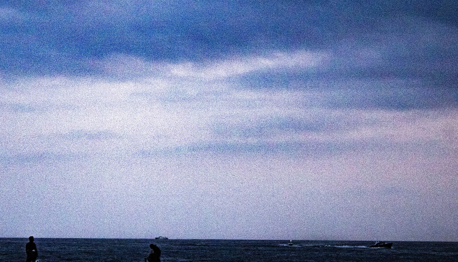 Siempre, en mis fotografías, me he inclinado por una imagen pobre, defectuosa, borrosa y tronada por ese grano digital que ensucia sacando nuevas formas que solo se podrían imprimir en esos píxeles llevados a su límite, convirtiendo las imágenes en una dimensión nueva e imaginaria en donde predominen y se manifiesten mis defectos; esta vez mi desesperanza en forma de horizontes que se desdibujan en la distancia, mi obsesión con el pixel volviendo la persona y su espacio en el mismo material quemado y sub expuesto combinando colores y formas que sumen una imagen fea, anti ultra-HD, pensando menos en el: ¿Qué piensan esas personas viendo al mar?, y más en: ¿Qué pienso yo viendo que ellos ven?