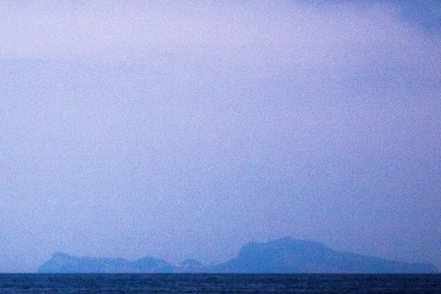 Un flujo no muy afortunado de ideas sobre el paisaje y la distancia solitaria que tengo hacia él, negando acercarme y conocerlo sin volverlo una silueta o una mancha. Sin negar la representación y la subjetividad inherente a la fotografía y el marco, esta manipulación digital permite descubrir destellos parecidos (pero no lo suficiente) a los que capta el ojo humano y ponernos de cara a una nueva relación con lo mundano y las realidades alternas-invisibles solo identificadas en la imagen pobre, poco a poco más visibles después de sus dos primeras tomas generales.